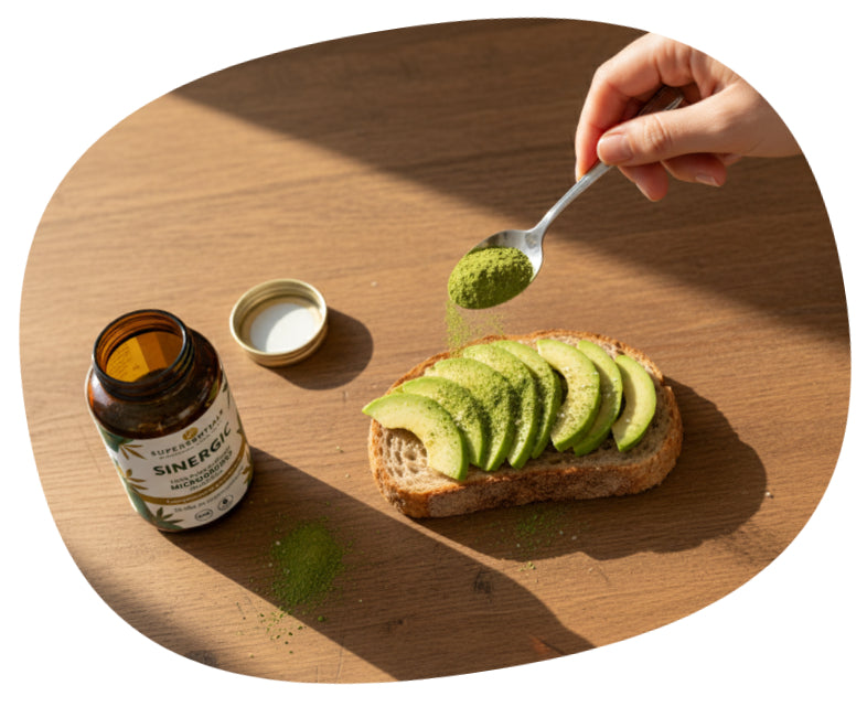 Tu complemento alimenticio a base de microgreens SYNERGIC aporta una nutrición concentrada y natural gracias a sus microgreens liofilizados, ricos en vitaminas, minerales y fitonutrientes. Su uso diario puede ayudarte a: